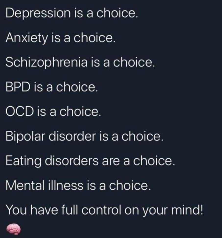 Wow! A very powerful blog. So many people believe in the above statements, including myself at certain points in my life. Thank you for being the voice of reason and letting us know it’s okay to disagree with those who really don’t understand the root causes of so many mental illnesses.